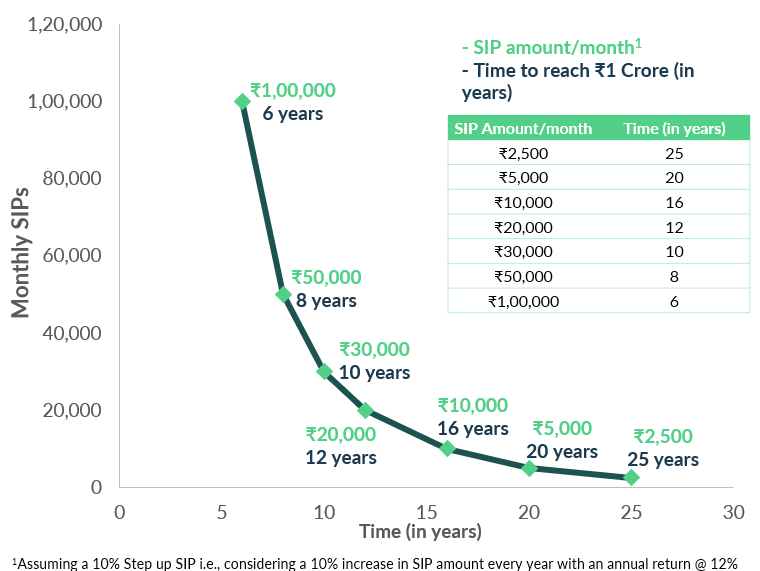 i. ₹10,000 SIP takes you 16 years to hit ₹1 Cr.