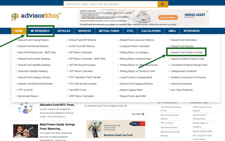 It’s like ordering 5 dishes at a buffet, only to realize they’re all just different versions of paneer. #3 – How To Check Fund Overlap (takes just 2 minutes)Here’s how you can do this using AdvisorKhoj.com